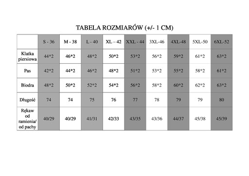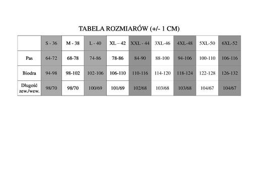 Wymiary podane w tabeli - proszę dokładnie porównać, rozmiarówka Polska standardowa odpowiadająca rzeczywistości.