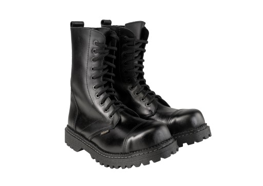 Klasyczny, 10 - dziurkowy model z kolekcji obuwia typu glany. Wykonany w całości z najwyższej jakości skóry naturalnej. Dwuwarstwowa podeszwa wzmocniona śrubami wykonana jest z termo-kauczuku odpornego na łamanie, pękanie i ścieranie, wyścielona wkładką, która doskonale izoluję nogę od podłoża i zapewnia doskonały komfort użytkowania. Czubek buta tzw. "kapsel" utwardzony blachą. NIEPOWTARZALNE.