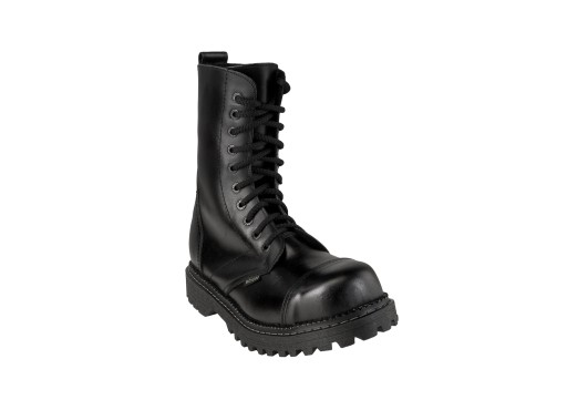 Klasyczny, 10 - dziurkowy model z kolekcji obuwia typu glany. Wykonany w całości z najwyższej jakości skóry naturalnej. Dwuwarstwowa podeszwa wzmocniona śrubami wykonana jest z termo-kauczuku odpornego na łamanie, pękanie i ścieranie, wyścielona wkładką, która doskonale izoluję nogę od podłoża i zapewnia doskonały komfort użytkowania. Czubek buta tzw. "kapsel" utwardzony blachą. NIEPOWTARZALNE.