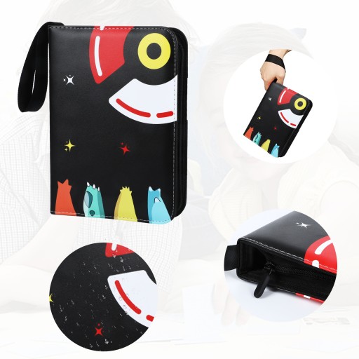 Materiały wysokiej jakości: album na karty kolekcjonerskie wykonany jest z wodoodpornej pianki EVA i skóry PU dla dobrej odporności na uderzenia, odporności na kurz i wilgoć. Wysokiej jakości folder zamykany na zamek błyskawiczny utrzymuje karty w stanie nienaruszonym; dodatkowa konstrukcja paska na rękę ułatwia przenoszenie.