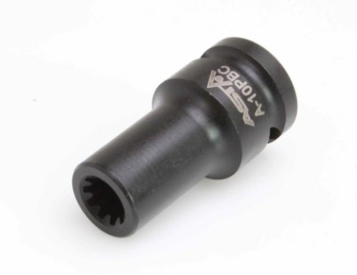 Specjalistyczna nasadka 10-kątna przeznaczona do demontażu i montażu śrub zaciskowych prowadnic klocków hamulcowych w zaciskach wielotłokowych w samochodach Audi S8, Q7, Porsche Cayenne, Cayman, Macan oraz VW Taureg.