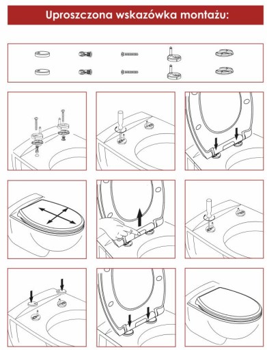- Uniwersalny kształt „D”, pozwala na montaż tej deski na poniższych modelach misek WC:
