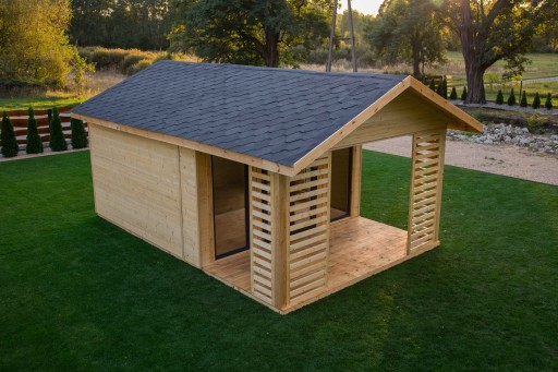 Domek złożony jest z pomieszczenia 400 x 400cm + taras do wypoczynku 200 x 400cm