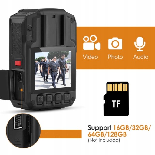 Body Cam, FULL HD, Wbudowana Bateria, Wodoodporna, Wytrzymała