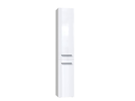 SZAFKA ŁAZIENKOWA, REGAŁ, SŁUPEK MODEL: NEL IV KORPUS: BIEL MAT FRONT: BIEL POŁYSK WERSJA Z DŁUGIMI DRZWIAMI ORAZ KOSZEM