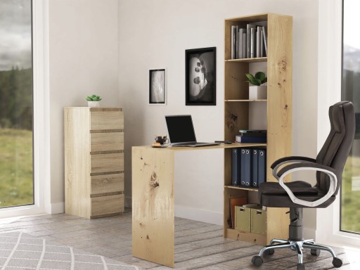 KLASYCZNY REGAŁ NA KSIĄŻKI, SEGREGATORY, ZABAWKI "R-50" KOLOR - DĄB ARTISAN Klasyczny regał biurowy to doskonałe rozwiązanie do przechowywania książek, zabawek, segregatorów oraz materiałów firmowych. Mebel powstał w oparciu o zastosowanie mocnej i solidnej płyty laminowanej. Obrzeża – wykończone tworzywem ABS (charakteryzującym się dużą wytrzymałością mechaniczną i chemiczną)