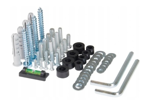 W zestawie z uchwytem otrzymujesz uniwersalne akcesoria montażowe które powinny być odpowiednie do większości montowanych telewizorów. Jeśli w uniwersalnym zestawie będzie brakowało odpowiednich śrub do Twojego telewizora, należy je dokupić we własnym zakresie w pobliskim sklepie z narzędziami.