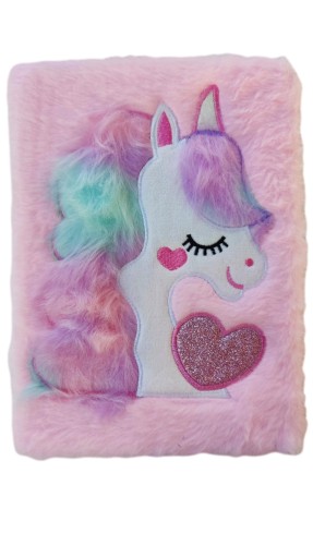 fioletowy PLUSZOWY PAMIĘTNIK Z JEDNOROŻCEM PLUS DŁUGOPIS GRATIS ORAZ NAKLEJKI DIAMENTOWE