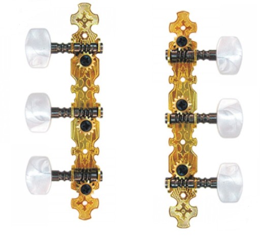 ✅ Trzpienie na struny oraz końcówki kluczy wykonano z trwałego tworzywa. Motylki są koloru perłowego.