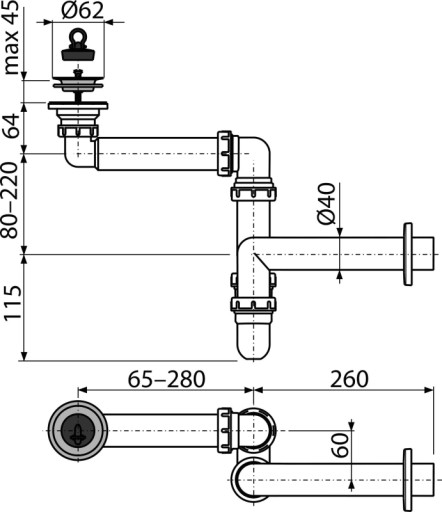 Praktyczny syfon przyścienny, nie zajmujący miejsca w szafce. Dzięki niemu można wstawić dodatkowe półki lub zwiększyć pojemność użytkową szafki.