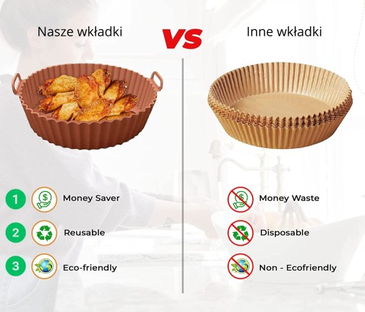 - ✅ NIEPRZYWIERAJĄCY - wodoodporny i olejoodporny materiał sprawia, że foremka nie przywiera, dzięki czemu nie ma problemu z wyjmowaniem posiłków lub brudzeniem frytkownicy czy innego urządzenia.