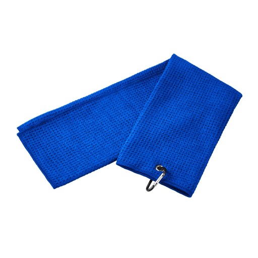 Składany Potrójny Ręcznik Golfowy Z Mikrofibry Z Karabińczykiem Niebieski