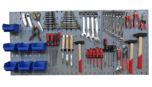 Ścianka perforowana z 21 zawieszkami i 7 pojemnikami