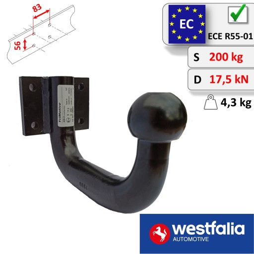 Uniwersalna, przedłużana kula flanszowa przykręcana czołowo na cztery śruby pasuje o rozstawie otworów 83x56 mm. Taki rozstaw otworów najczęściej stosowany jest w busach i lawetach we wzmocnionej tylnej belce ale kula może być zamontowana również w każdym haku holowniczym przystosowanym do montazu kuli na cztery śruby.