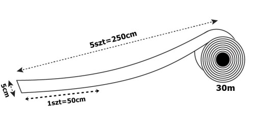 Kupując 5 sztuk otrzymasz folię o wymiarze: 5cm x 250cm