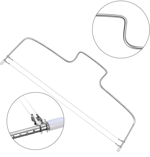 Dzięki cienkiemu drutowi wyrównywanie i krojenie ciasta jest bardzo proste. Wystarczy kilka przesunięć struną wzdłuż ciasta, by podzielić go na idealne części. Zastosowana technika zmniejsza także ilość okruchów, dzięki czemu każdy tort od tej pory będzie idealnie równy i łatwiejszy w dekoracji.