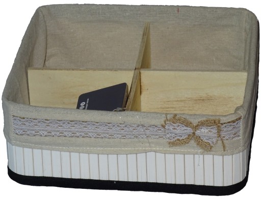Biały bambusowy koszyk na kosmetyki z materiałem