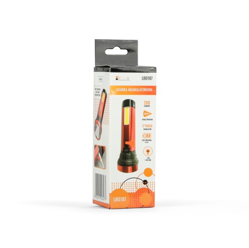 Latarka akumulatorowa LIBOX LB0187 COB+LED to niewielkich rozmiarów latarka wyposażona w mocną diodę LED. Gwarantuje to oświetlenie przestrzeni na około 150 m. Oferowana latarka dzięki wbudowanej bocznej diodzie COB potrafi oświetlić pomieszczenie stawiając ją pionowo.