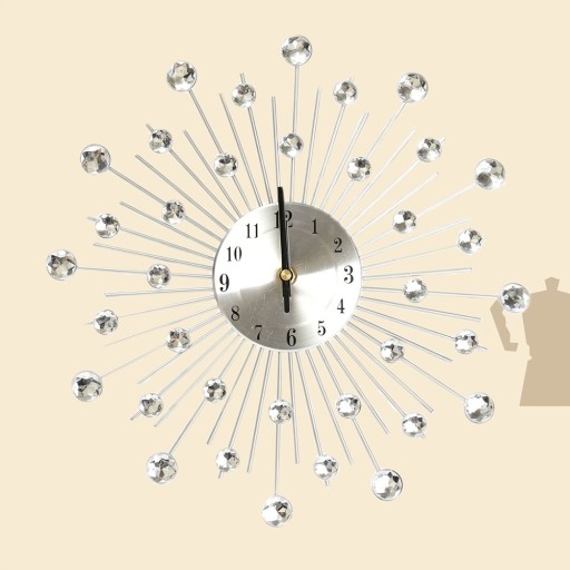 Ten modny i stylowy zegar ścienny pasuje do rhinestone, który wygląda chłodno i szykownie. Okrągła tarcza z wyświetlaczem analogowym zapewnia łatwy odczyt. Precyzyjny mechanizm kwarcowy zapewnia dokładne odmierzanie czasu. Odpowiedni do sypialni, salonu, gabinetu, biura itp.