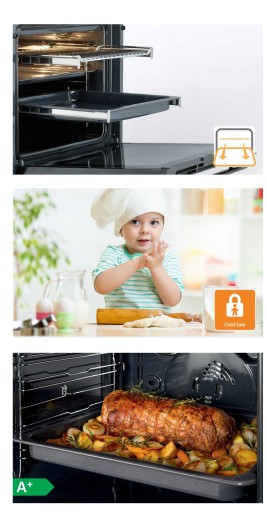 - Prowadnice teloskopowe: 2 poziomy. Wygoda i bezpieczeństwo podczas wkładania i wyjmowania naczyń z potrawą.
