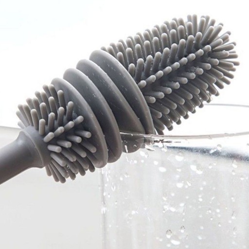 Nowoczesna, silikonowa szczotka do mycia butelek oraz innych miejsc trudno dostępnych pozwala na dokładne ich czyszczenie bez zagrożenia uszkodzenia butelek. Jest jej wykonanie z miękkiego silikonu pozwala na mycie rzeczy bez ich rysowania.