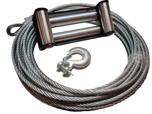 ZESTAW LINA STALOWA 10MM 25 M WRAZ Z PROWADNICA ROLKOWĄ LINY STALOWEJ I HAKIEM
