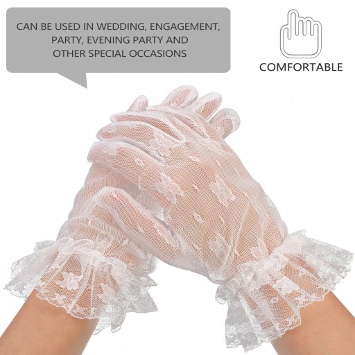 To koronkowe krótkie rękawice są wykonane z wysokiej jakości technologii, może służyć Ci przez długi czas. pięknym wyglądzie, może być szeroko stosowany w weselach, występach, przyjęciach itp. Rozsądna konstrukcja sprawia, że nadaje się do większości dorosłych kobiet.