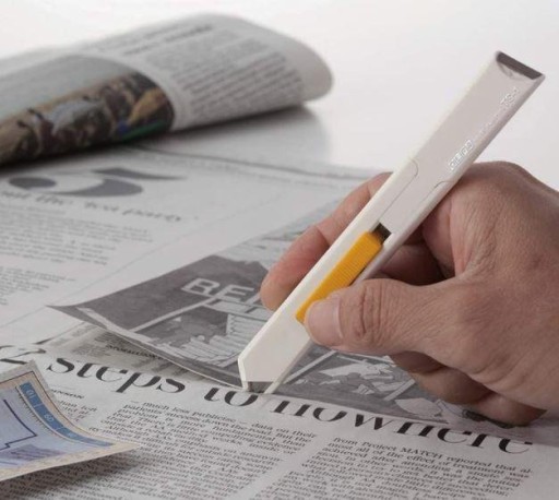 ▶️ Nóż TS-1 należy trzymać w taki sam sposób jak pióro czy długopis. Prowadząc nóż płynnym ruchem wzdłuż linii cięcia, należy go cały czas dociskać lekko do podłoża, tak aby pomiędzy nożem a arkuszem przecinanego papieru nie było żadnego odstępu.