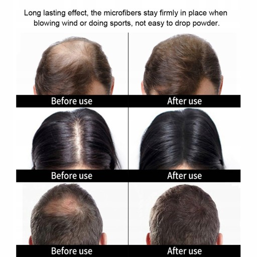⏺Dzięki zasadzie adsorpcji elektrostatycznej symulowane włókna włosa są mocno adsorbowane na włosach, uzyskując w ten sposób wizualnie gęsty efekt.