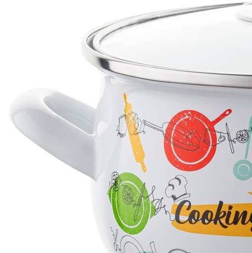 Garnek został pokryty bezpieczną dla zdrowia i łatwą w utrzymaniu czystości powłoką emaliowaną. Powłoka ta nie wytwarza szkodliwych substancji oraz nie zmienia smaku potraw. Dodatkowo garnek może stać się ładną ozdobą w kuchni dzięki ciekawej stylistyce.