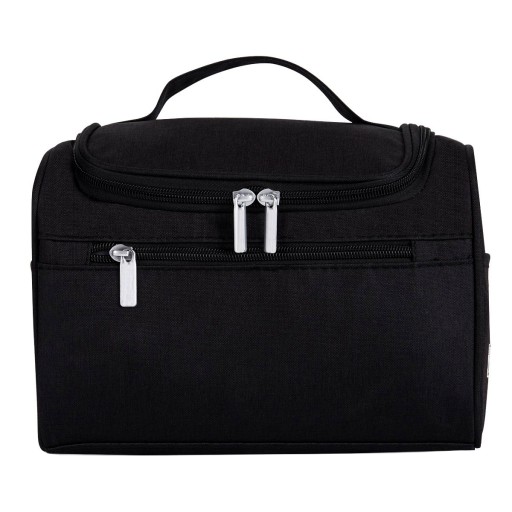 Nasza kosmetyczka to produkt, który sprawdzi się zarówno w podróży jak i w domowym zaciszu. Pojemna, wyposażona w siedem wewnętrznych kieszonek z siatki oraz jedną kieszonkę zamykaną na zamek pozwala uporządkować wszystkie niezbędne kosmetyki i akcesoria. Kuferek posiada na zewnątrz dodatkową kieszeń zapinaną na zamek oraz dwie otwarte kieszonki po bokach. W trakcie podróży nic nie ulegnie uszkodzeniu ponieważ każdy pędzel, szminka, szczoteczka do zębów czy krem znajdą w niej swoje stabilne miejsce. W razie potrzeby szybko odnajdziemy w niej niezbędne produkty. Wykonana z wodoodpornego materiału. Plastikowy haczyk pozwala zawiesić kosmetyczkę w hotelowej łazience bez konieczności wypakowywania zawartości. Kuferek posiada uchwyt pozwalający na wygodne przenoszenie.