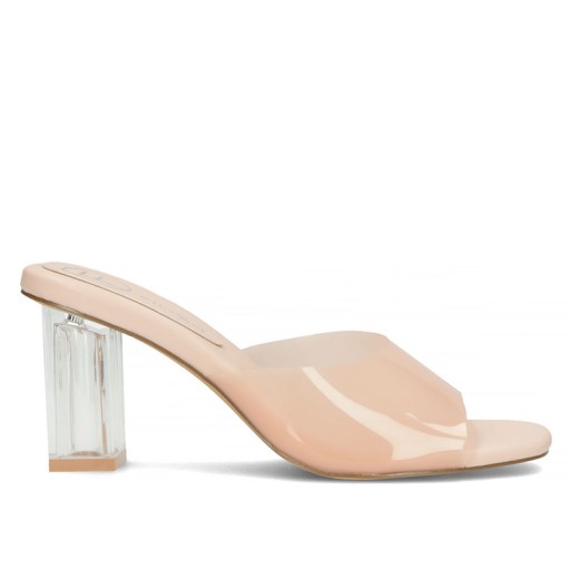 - całość oparta na jest na stabilnym przezroczystym obcasie o wysokości 7 cm
