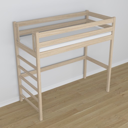 Dębowe łóżko piętrowe antresola N01 dąb bielony 100x180