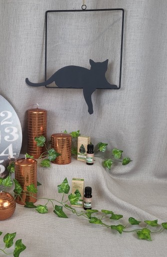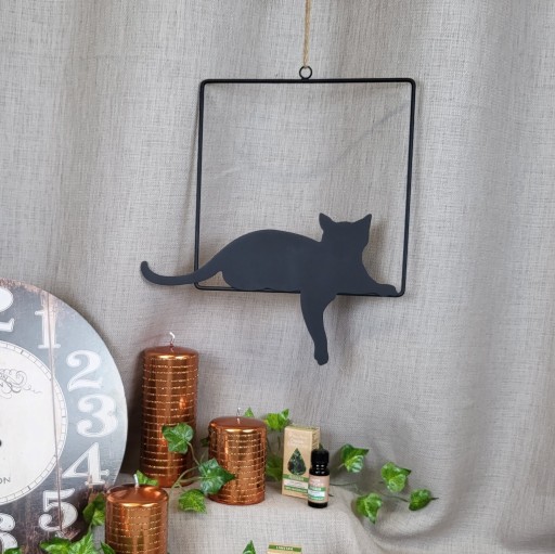Zawieszka w kształcie siedzącego kota, będzie ciekawym akcentem jako ozdoba w oknie czy też w każdym innym, dowolnym miejscu, któremu chcemy nadać oryginalny charakter.