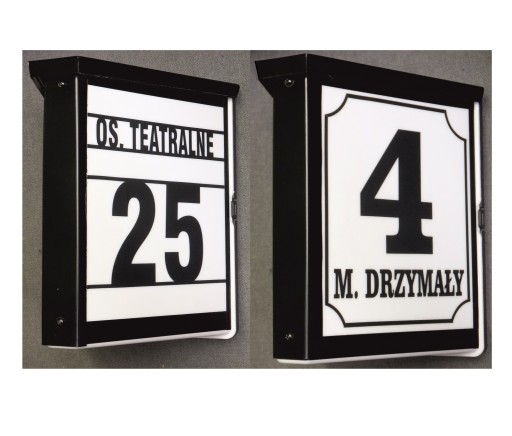 - Dane adresowe, które mają być wykonane na lampie (numer domu + opcjonalnie ulica lub inne dane)