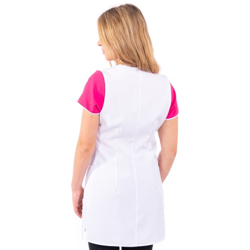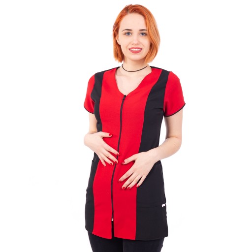 Fartuszek wykonany z tkaniny , odpornej na odbarwienia farbami i rozjaśniaczami.