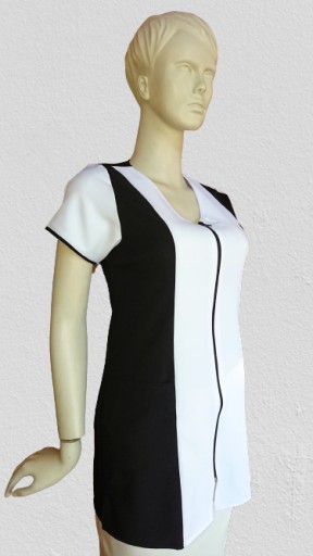 Śliczny dopasowany fartuszek, który optycznie wyszczupla każdą sylwetkę.