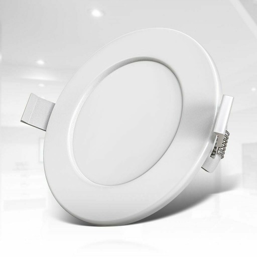 Oprawka wpustowa - Downlight - w lampie zastosowana wysokiej jakość moduł LED o mocy 6W i barwie światła ciepłej 3000k dzięki któremu głębokość montażowa zmniejszyła się do zaledwie 3 cm. Oprawka w kolorze białym a dodatkowym atutem jest to że może być stosowana w łazience dzięki IP44 oraz może współpracować ze ściemniaczem.