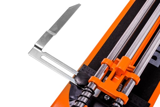 Maszynka wyposażona jest w kątownik 0-45 stopni. Dzięki niemu przytniemy płytki pod kątem jakiego pożądamy.