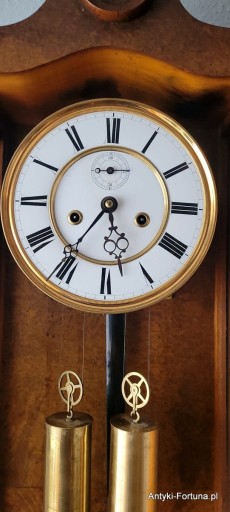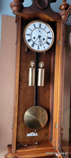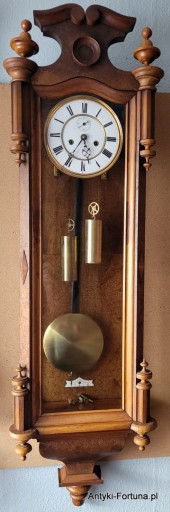 Bardzo ładny stary zegar linkowy znanej i renomowanej firmy Germania ze Świebodzic , zegar z ok. roku 1879 o czym świadczy nabity numer. Zegar po przeglądzie i regulacji , obudowa w ładnym stanie , korbka do nakręcania w komplecie.Wymiary : wys 115 cm , szer 33 cm , gł 15 cm, zegar oczywiście całkowicie sprawny , do zawieszenia