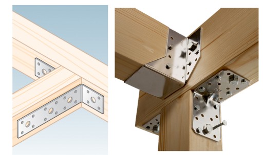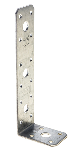 Podstawowe kątowniki do łączenia drewna z drewnem, betonem lub stalą. Różne wielkości otworów zwiększają ich uniwersalność i umożliwiają montaż na różnych rodzajach łączników trzpieniowych.