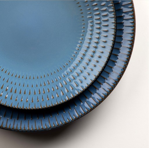 Wypukłości i etniczny wzór sprawiają iż zastawa ma wyrazisty rustykalny charakter.