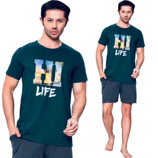 BAWEŁNIANA MĘSKA PIŻAMA Z KRÓTKIM RĘKAWEM I KRÓTKIMI SPODNIAMI