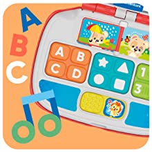 Laptop dla dzieci z wieloma czynnościami w zasięgu dziecka: interaktywna strona z przyjaciółmi zwierząt, literami, kształtami, cyframi i przyciskami kolorów oraz przyciskiem muzyki do nauki przez zabawę!