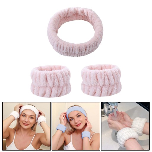 Zestaw opasek do mycia twarzy i nadgarstka Opaska do mycia twarzy z mikrofibry do makijażu Jasnoróżowy