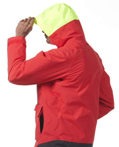 - Kaptur w kolorze fluo, chowany w kołnierzu