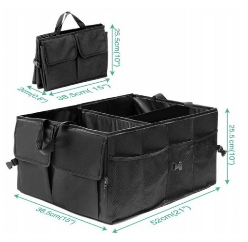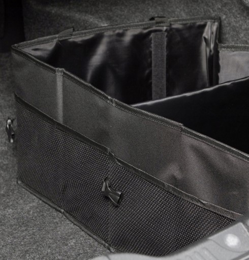 Jeżeli akurat nie będziesz potrzebować przechowywać rzeczy w organizerze, ten złożony zajmuje niewiele miejsca. Można go bez problemu schować za fotel bądź w bagażniku