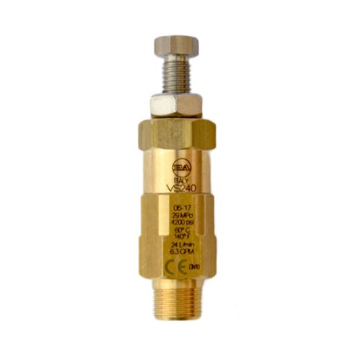 Mosiężny zawór reguluje objętość cieczy w pompie gdy ciśnienie robocze przekracza wartość kalibracji samego zaworu.