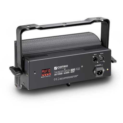 Thunder Wash 600 RGB posiada 3-stykowe gniazda XLR pod wejścia i wyjścia DMX, 8 trybów DMX z funkcjami ściemniania, częstotliwości i długości błysków oraz możliwość pracy w trybie Master, Slave lub Standalone. Czytelny wyświetlacz LED z przyciskami M ode, Enter, Up i Down służy do ręcznego sterowania urządzeniem. Wbudowany mikrofon umożliwia sterowanie dźwiękiem.