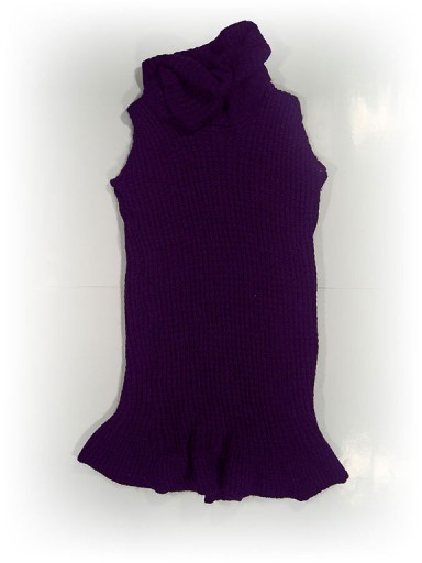 Śliczny, duży, szeroki, zakrywający zalotnie ramiona, prażkowany golf szalowy pod szyją nadaje stylu i ekspresji.